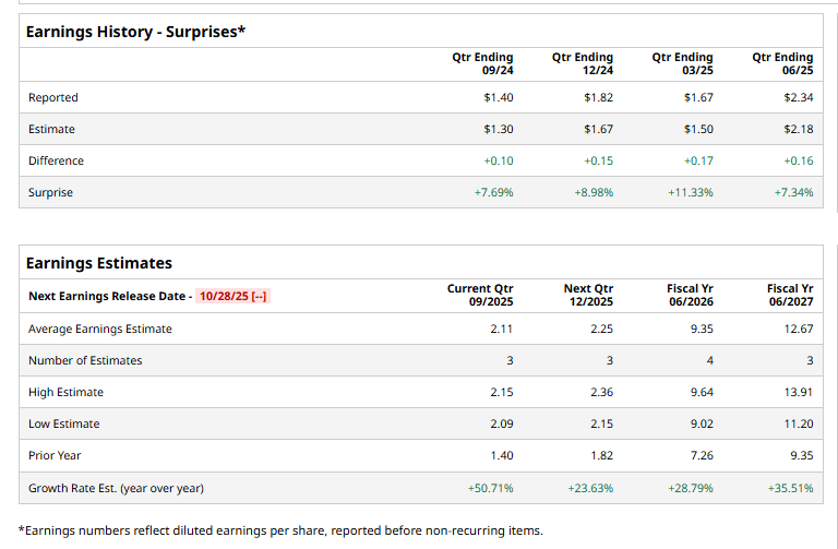 For fiscal 2025, analysts expect the company to report EPS of $9.35, representing a 28.8% increase from $7.26 in fiscal 2024.